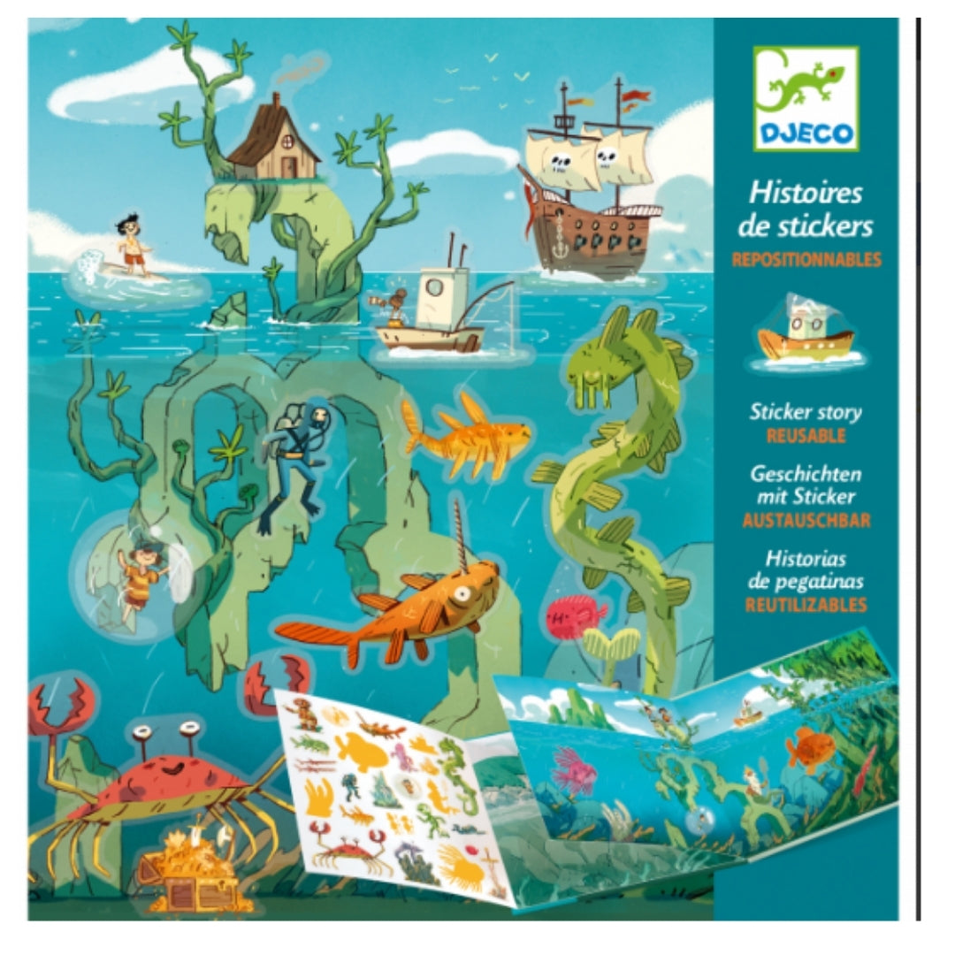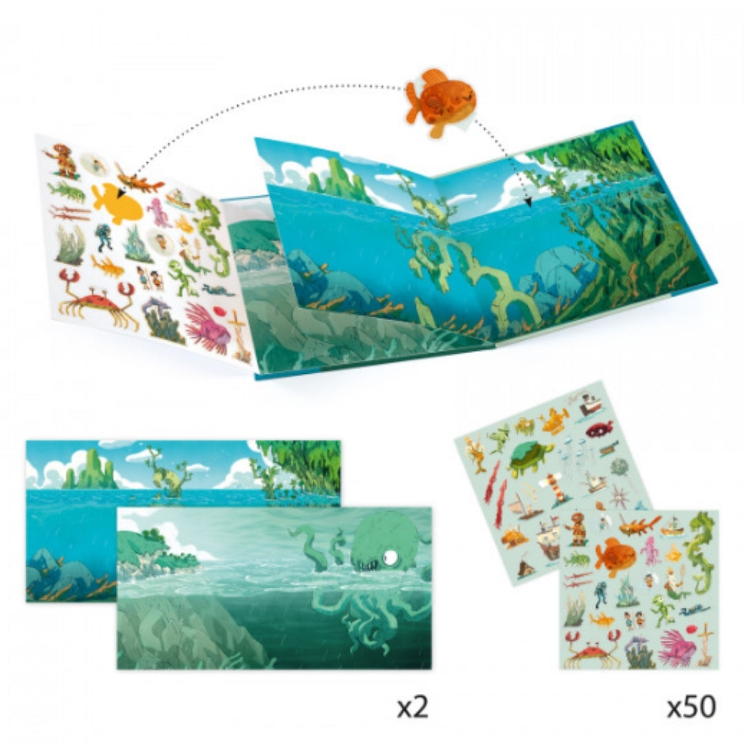 2 didelės panoramos, kurias galima papildyti perkeliamais lipdukais, norint sukurti smagias istorijas ir 2 puslapiai siluetų, kad būtų galima surinkti ir priklijuoti nepanaudotus lipdukus. Kadangi lipdukai daukartinio naudojmo, galite sukurti tiek istorijų, kiek norite!