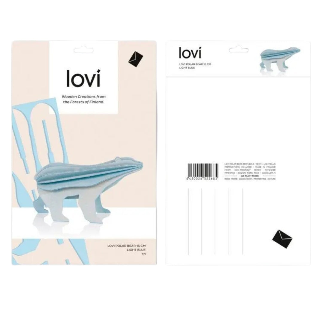 Lovi Oy poliarinis lokys – tai medinė figūrėlė, kuri puikiai perteikia šio gyvūno jėgą ir ramybę. Poliarinis lokys yra išpjautas iš aukštos kokybės medžio, su minimalistiniu dizainu. Ši figūrėlė papuoš Jūsų interjerą arba nudžiugins mažuosius.