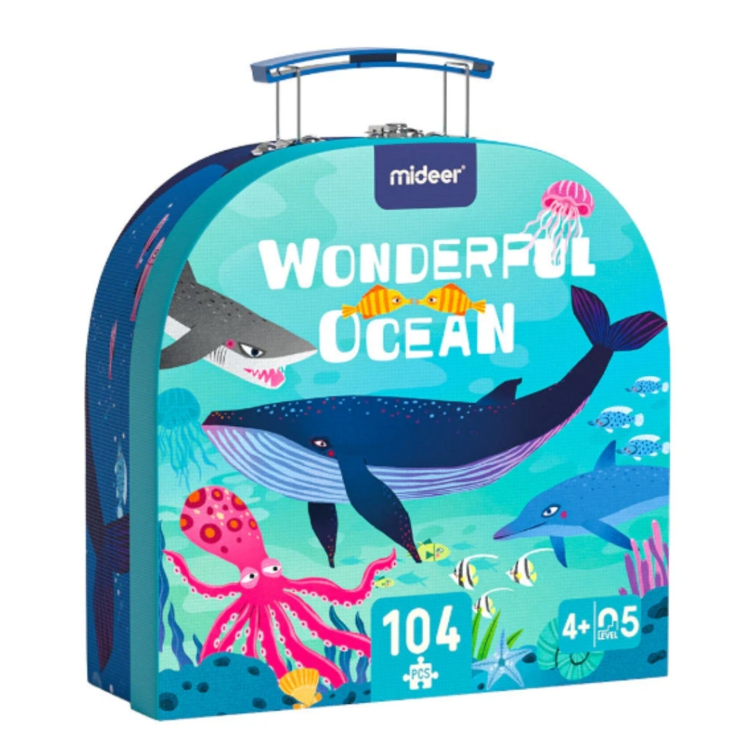 Mideer nešiojamų dėlionių serija pasižymi ergonomišku pakuotės dizainu, todėl ją lengva nešiotis ir laikyti dėlionės dalis. Puikus pasirinkimas dovanai. Vandenyno tematika vaizduoja spalvingus jūrų gyvūnus, galite pamatyti didžiulius mėlynus banginius, grėsmingus ryklius, rausvus aštuonkojus ir mielus vėžlius...