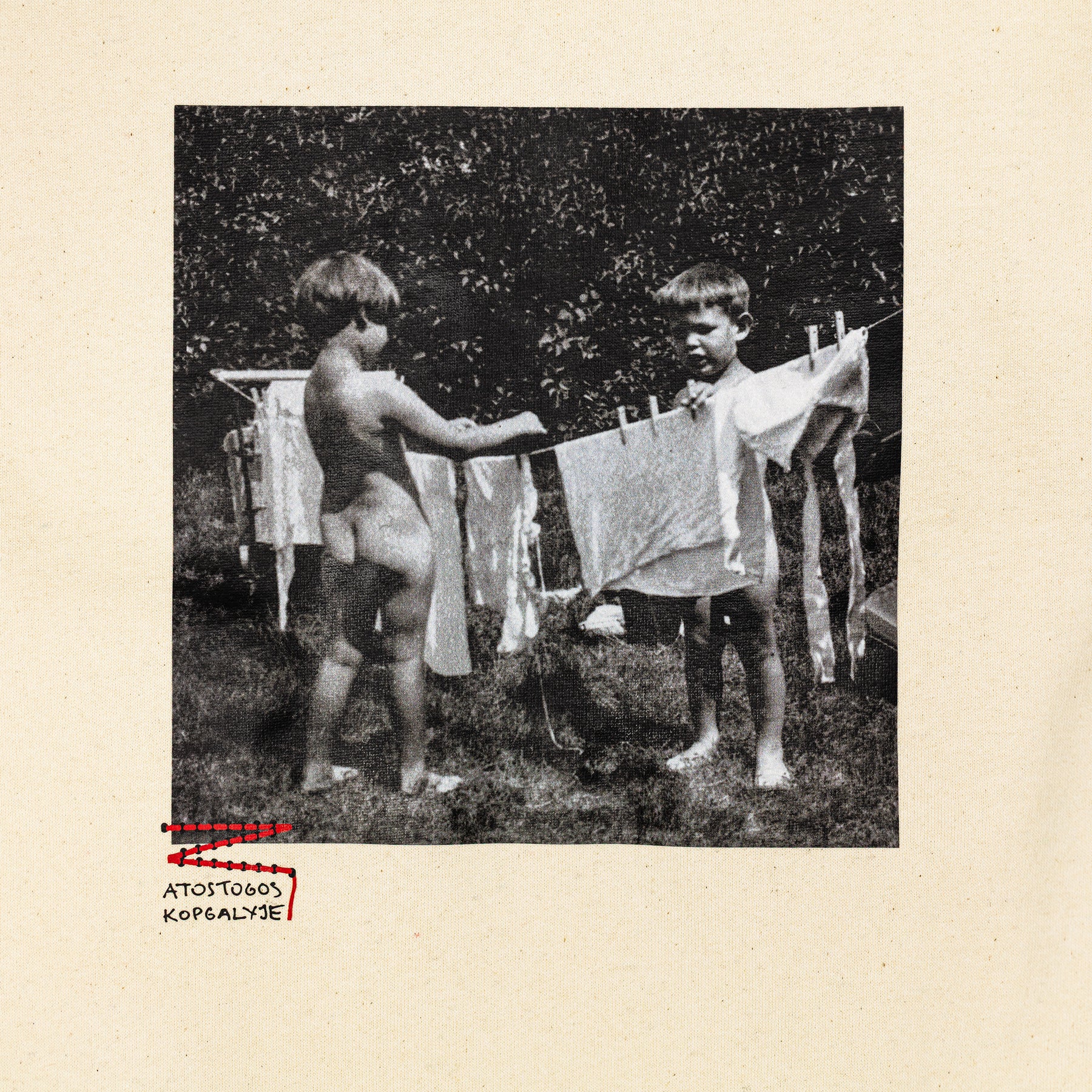 Vaikai Kopgalyje: džiauna skalbinius sodelyje. Iš šeimos nuotraukų albumo „Memel“.
