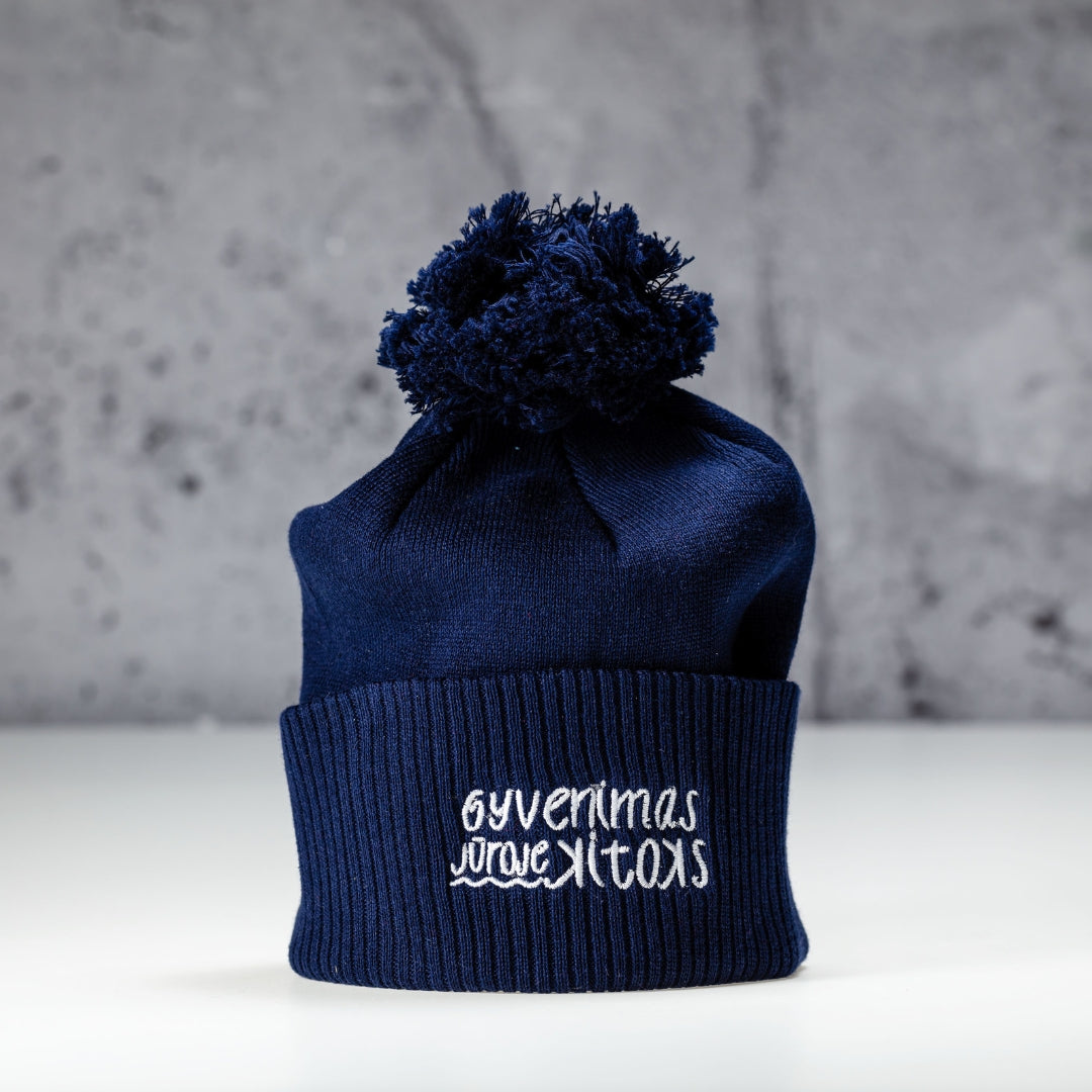Kepurė su bumbulu GYVENIMAS JŪROJE KITOKS, tamsiai mėlyna