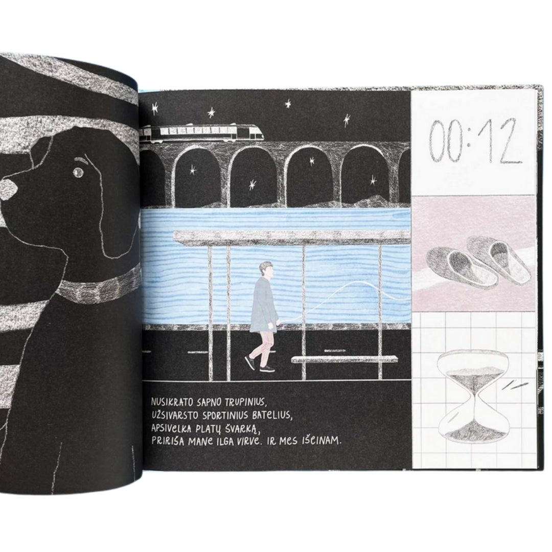 Gal kada naktį atsidūrę mieste sutikote Mėnulį? Ne, ne tą, kuris šviečia danguje, o tokį šunį. Šuo vardu Mėnulis – ypatingas. Jis išeina tik naktį. Kartu visada vedasi ir savo žmogų. Sekime paskui juos. Ir naktis atskleis mums savo paslaptis. Joje sutiksime juodą katiną, peles, ant konteinerių šokančias tango, linksmus šiukšlininkus, apsiskaičiusį benamį, įskilusią plytelę, vaiduoklius balose… Naktis netruks prabėgti. O tada… Tada išauš dar viena balta diena.