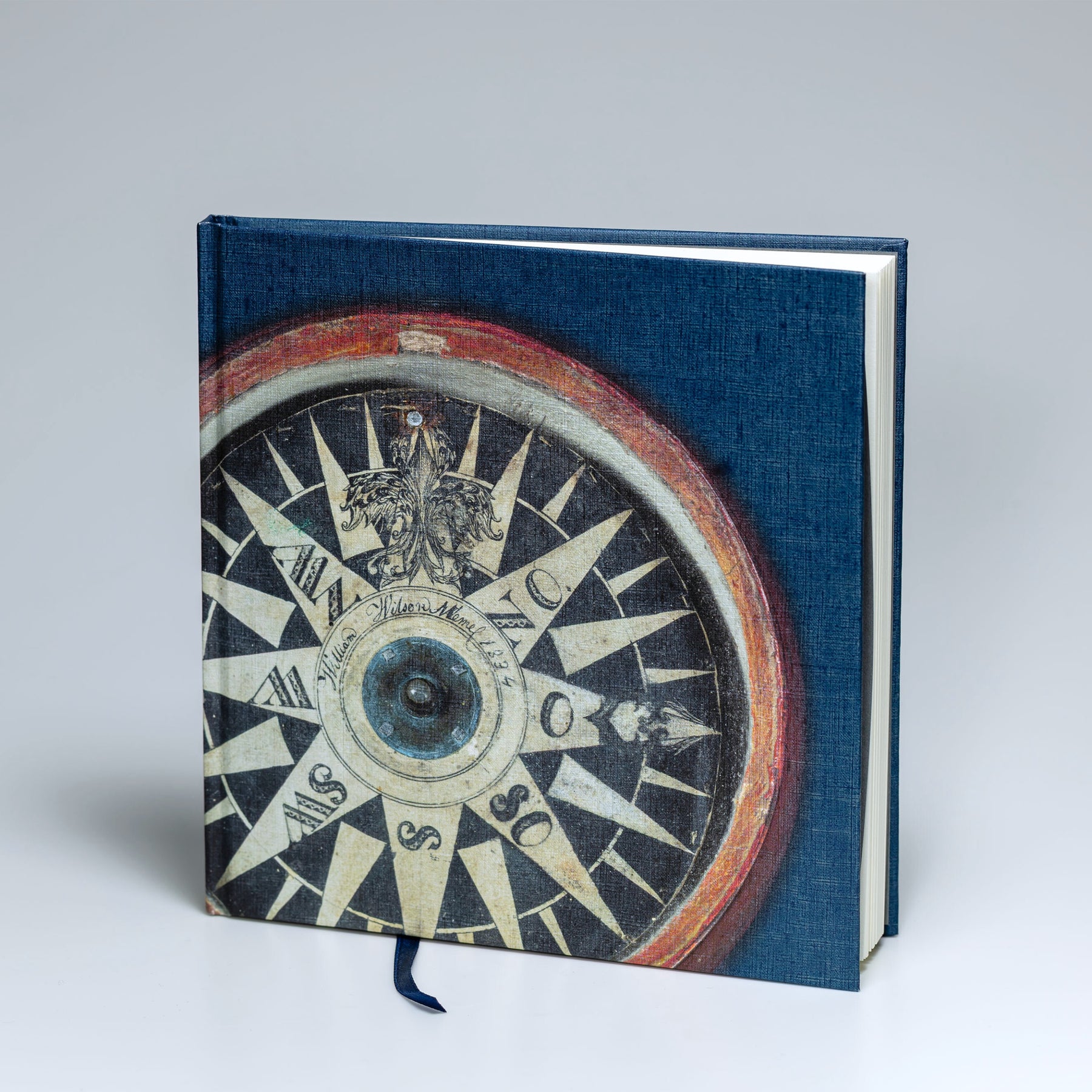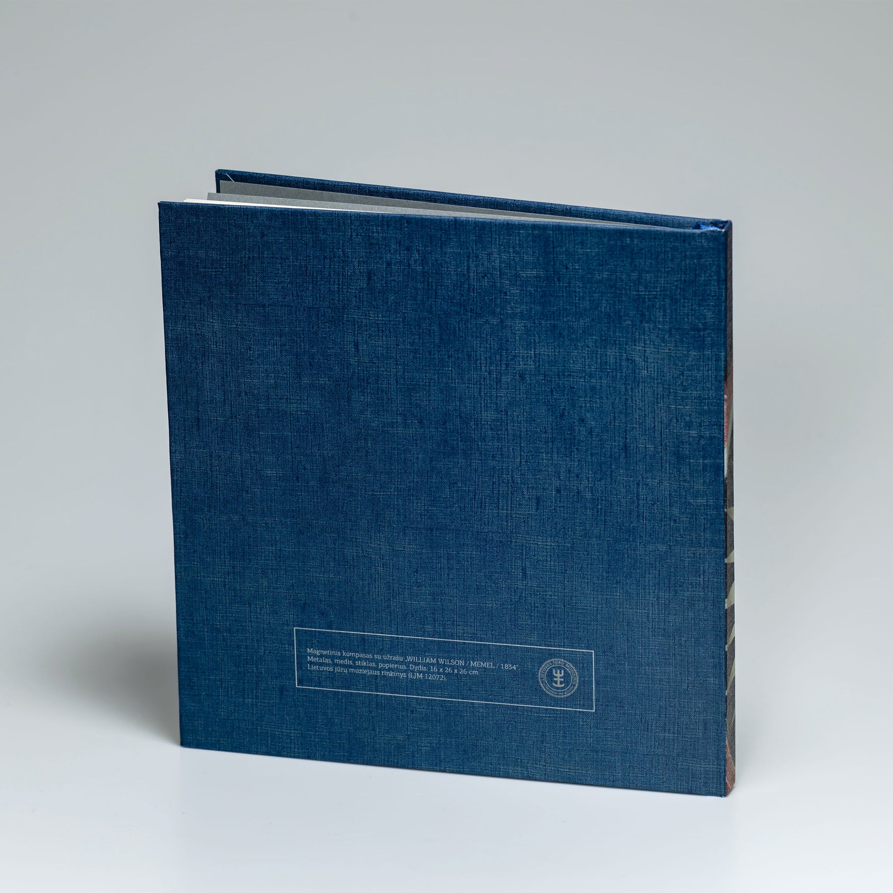 Išskirtinio dizaino užrašų knyga, kurios viršelį puošia eksponato – Klaipėdoje pagaminto kompaso – atvaizdas.
