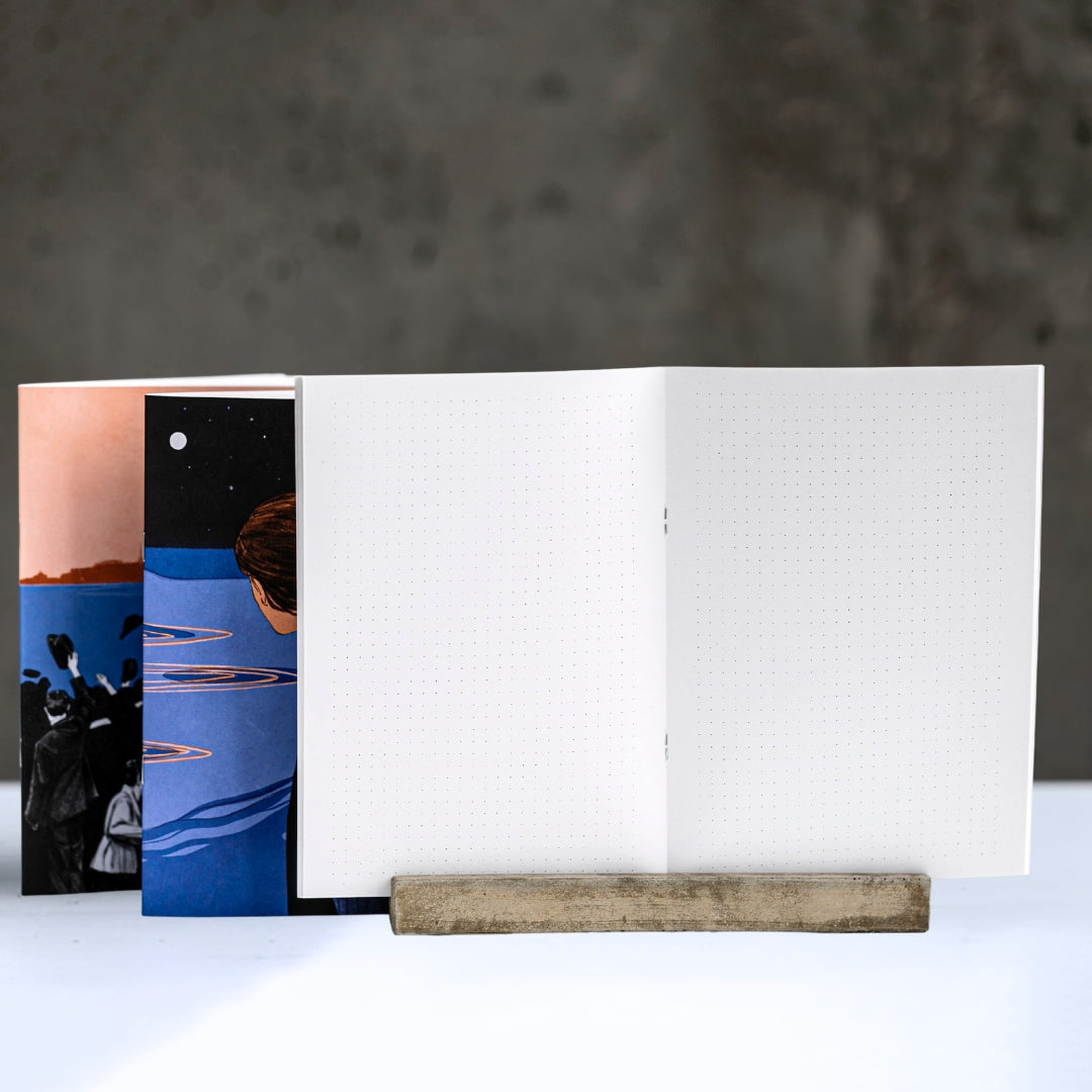 Dydis: 21 x 14,5 cm Puslapių: 48 Vidiniai lapai: 80 gsm, balti, juodais taškeliais Popieriaus rūšis: 100 proc. perdirbtas popierius (Nautilus)