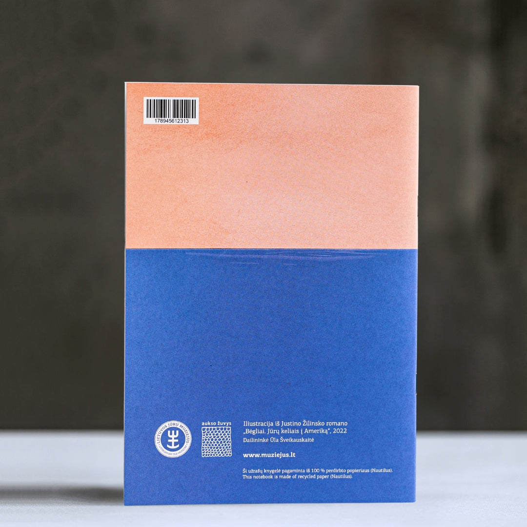 Iš perdirbto popieriaus pagaminta, užrašų knygelė su įkvėpiančiomis iliustracijomis iš Justino Žilinsko romano „Bėgliai. Jūrų keliais į Ameriką“. Kurkite, planuokite, užsirašykite gražiausias atostogų akimirkas bei leiskitės į bėgliškas keliones kartu su „Bėgliai. Jūrų keliais į Ameriką“ nuotykinio romano herojais!